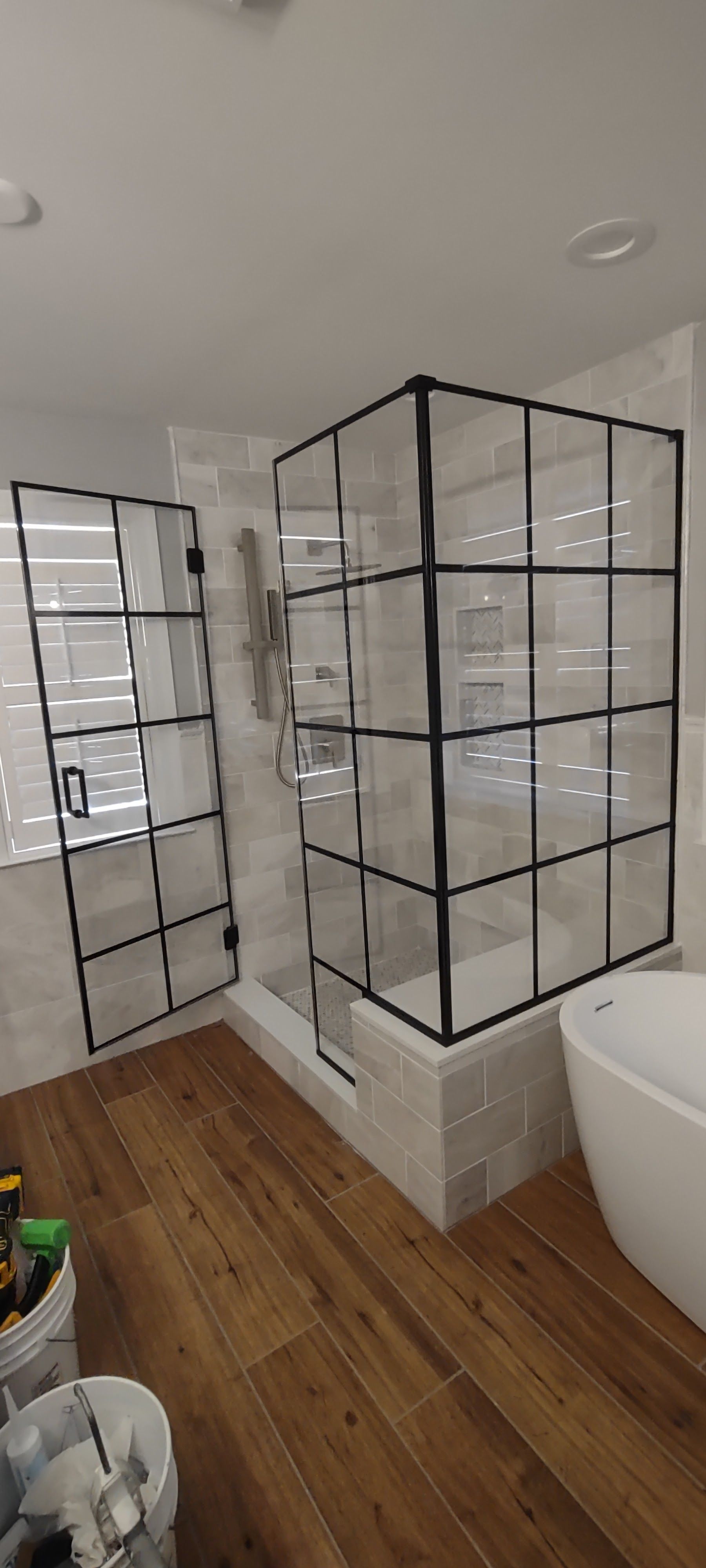 An Ewing Glass and Mirror frameless shower is the gold standard in custom shower design. Virtually limitless in size and layout, creating your sanctuary space means looking at your bathroom through a new lens. With guidance from our glass professionals your dream shower is only steps away. Frameless custom showers fit beautifully into new construction projects, but are equally at home in bathroom renovations. Maximize space, open up site lines, honor windows and architectural details by designing for your space, not around it.